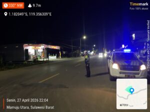 Polres Pasangkayu – Dalam rangka menjaga keamanan dan ketertiban lalu lintas pada malam hari, Satuan Lalu Lintas (Satlantas) Polres Pasangkayu melaksanakan kegiatan Blue Light Patrol pada Senin, 27 April 2026, mulai pukul 20.00 WITA hingga selesai.