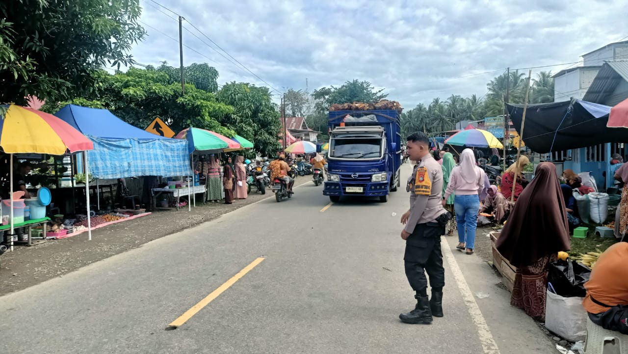 Polres Pasangkayu – Dalam upaya menjaga keamanan dan kelancaran aktivitas masyarakat, Bhabinkamtibmas Polsek Bambalamotu, AIPDA Hamdani, melaksanakan kegiatan pengamanan dan pengaturan lalu lintas (turlalin) di Pasar Tradisional Dusun Batio, Desa Randomayang, Kecamatan Bambalamotu, Kabupaten Pasangkayu, pada Sabtu (22/11/2025) pukul 08.00 Wita.