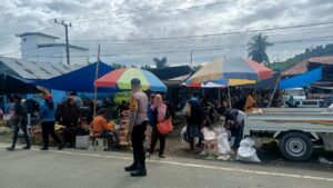 Dalam kegiatan tersebut, AIPDA Hamdani melakukan patroli di area dalam pasar untuk memastikan situasi tetap aman, kondusif, serta meminimalisir potensi gangguan kamtibmas. Selain itu, ia juga mengatur arus lalu lintas di jalan trans Sulawesi tepat di depan pasar, guna mengantisipasi kepadatan kendaraan dan memberikan kenyamanan bagi para pengunjung serta pedagang.