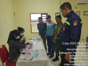 Polres Pasangkayu — Bertempat di Aula Tambak Udang PT. Manakara Sakti Abadi, Dusun Urubanua, Desa Sarjo, Kecamatan Sarjo, Kabupaten Pasangkayu, Bhabinkamtibmas Polsek Bambalamotu AIPDA Sardi melaksanakan pendampingan kegiatan pemeriksaan tes urine terhadap sejumlah karyawan perusahaan, Sabtu (2/8)