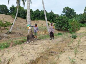Dalam kesempatan itu, BRIPKA Rijal melakukan pemantauan pertumbuhan tanaman sekaligus memberikan motivasi kepada pemilik lahan agar terus merawat tanaman secara optimal demi hasil panen yang maksimal.