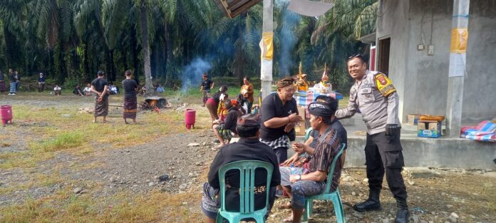 Kegiatan berlangsung di Lingkungan Taman Indah, Kelurahan Martajaya, dan dilanjutkan hingga ke pemakaman umat Hindu di areal Pura Meraja Pati. Pengamanan dilakukan langsung oleh Bhabinkamtibmas Kelurahan Martajaya, AIPDA Ilyas Ondo, guna memastikan seluruh rangkaian prosesi berjalan dengan aman, tertib, dan lancar.