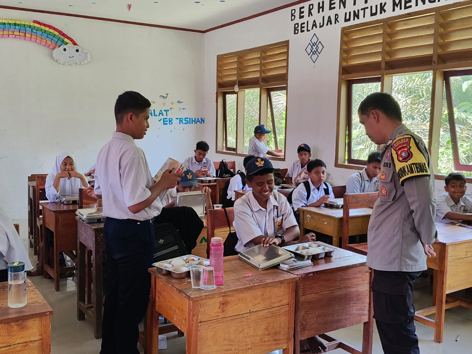 Polres Pasangkayu – Dalam rangka mendukung program pemerintah di bidang kesehatan dan gizi anak sekolah, Bhabinkamtibmas Polsek Sarudu BRIPKA Felix melaksanakan pengawasan penyaluran Makanan Bergizi (MBG) pada Senin, 10 November 2025 pukul 09.00 WITA di SMPN 03 Dapurang, Desa Benggaulu, Kecamatan Dapurang, Kabupaten Pasangkayu.