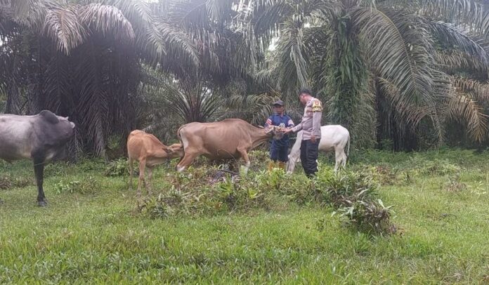 Dalam kegiatan tersebut, Aipda Hasbudi menemui salah satu warga setempat Lk Basri , yang sedang berada di lahan peternal miliknya. Kepada pemilik ternak, Bhabinkamtibmas menyampaikan bahwa situasi PMK di wilayah tersebut saat ini masih dalam kondisi aman, tanpa laporan adanya kasus penyakit yang menyerang hewan ternak.