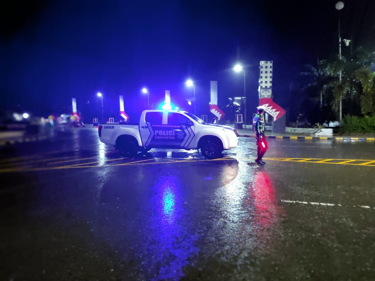 Dengan mengedepankan patroli Blue Light Patrol, anggota Satlantas terus menyisir sejumlah titik rawan kecelakaan dan pelanggaran lalu lintas di tengah cuaca yang tidak bersahabat. Lampu rotator biru yang menyala terang di jalanan basah menjadi simbol kehadiran Polri dalam memberikan rasa aman dan nyaman bagi masyarakat.