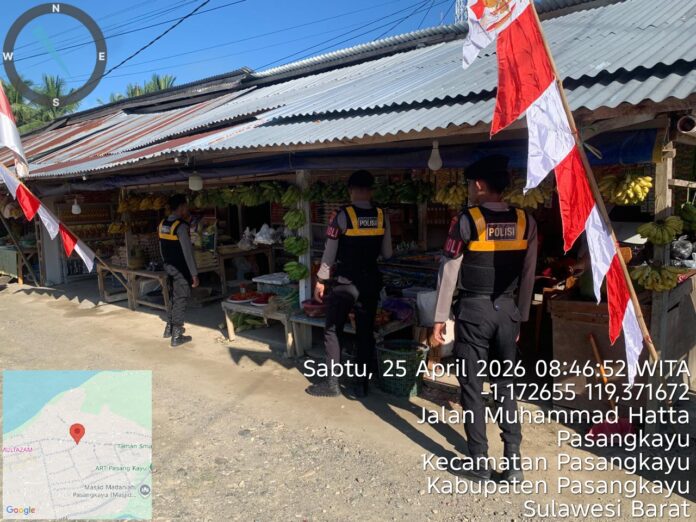 Polres Pasangkayu – Personel Satuan Samapta dari Polres Pasangkayu terus mengintensifkan kegiatan patroli rutin guna menjaga situasi keamanan dan ketertiban masyarakat (kamtibmas) di wilayah hukum Pasangkayu. Kegiatan patroli tersebut dilaksanakan pada Sabtu pagi, 25 April 2026, menyasar sejumlah titik strategis, termasuk kawasan pasar tradisional hingga area pesisir pantai.