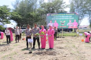 Suasana penuh keakraban dan kekompakan terlihat selama kegiatan berlangsung. Para peserta bersama-sama menanam pohon dengan semangat gotong royong, menandai sinergi antara Polri, Bhayangkari, dan masyarakat dalam menjaga kelestarian lingkungan.