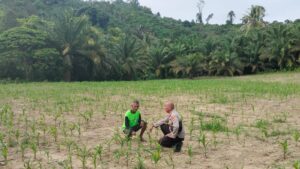 Selain melakukan pengecekan pertumbuhan tanaman, Kapolsek juga berdialog dengan pemilik lahan terkait perawatan, kendala yang dihadapi, serta kebutuhan yang diperlukan guna mendukung hasil panen yang maksimal.