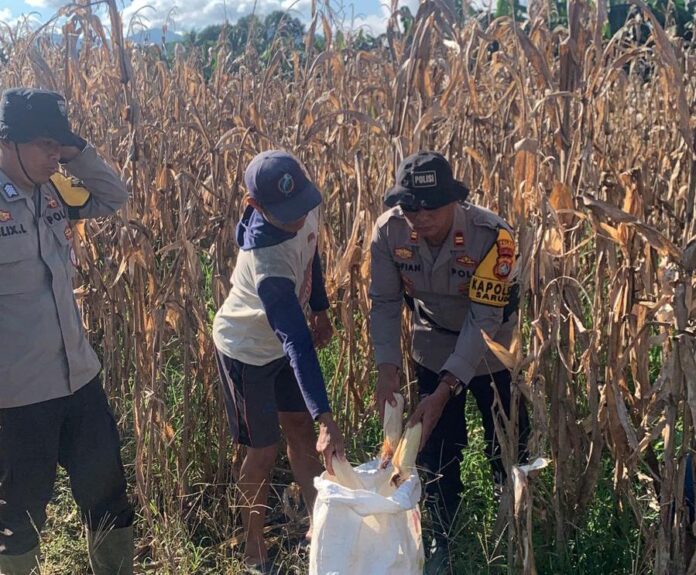 Polres Pasangkayu – Wujud nyata kepedulian terhadap masyarakat kembali ditunjukkan jajaran Polsek Sarudu. Kapolsek Sarudu IPTU Sofian Safruddin bersama personel Bhabinkamtibmas turun langsung ke lapangan membantu warga binaan dalam kegiatan panen jagung.