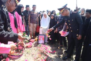 Dengan mata berkaca-kaca, Kapolres Pasangkayu memulai penimbunan liang lahat. Satu sekop tanah pertama dari sang pemimpin, kemudian diikuti oleh keluarga dan rekan-rekan sejawat, menjadi saksi bisu atas cinta dan kehilangan yang mendalam.