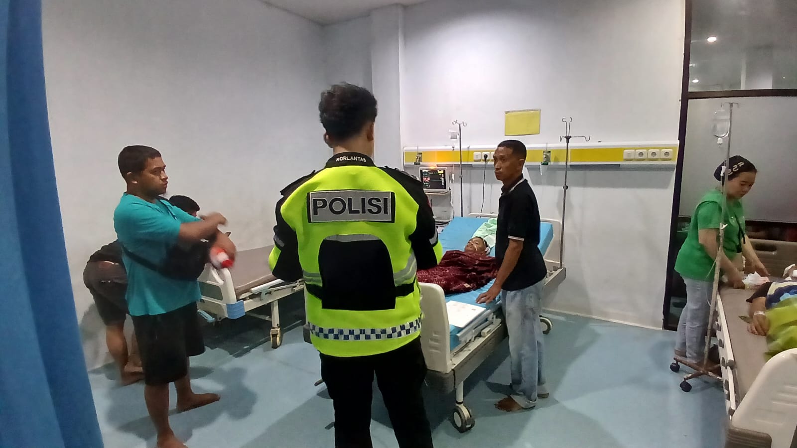 Dari dokumentasi di lokasi perawatan, terlihat personel kepolisian turut memantau kondisi korban di ruang perawatan rumah sakit, sekaligus berkoordinasi dengan pihak medis dan keluarga korban. Kehadiran aparat kepolisian ini sebagai bentuk pelayanan dan kepedulian terhadap masyarakat.