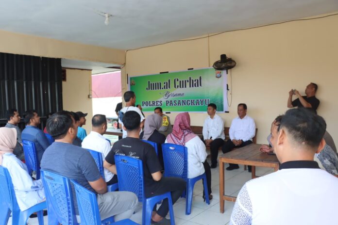 POLRES PASANGKAYU – Melalui program Jumat Curhat yang digagas oleh Polri, masyarakat kian menyampaikan keluhan secara langsung kepada pihak Kepolisian. Seperti halnya dalam acara Jumat curhat yang dilaksanakan oleh Polres Pasangkayu di desa Gunung Sari, Kecamatan Pasangkayu Kabupaten Pasangkayu Jumat (31/01).