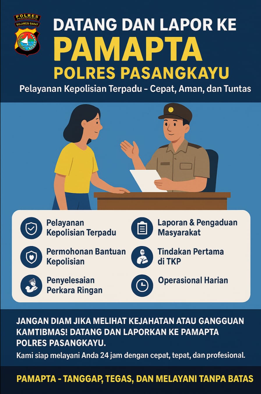 🕓 Pamapta Polres Pasangkayu siap melayani 24 jam — Cepat, Aman, dan Tuntas.