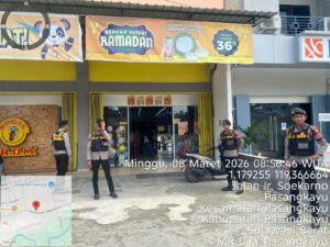 Personel Satuan Samapta Polres Pasangkayu melaksanakan patroli pagi pada Minggu, 8 Maret 2026 mulai pukul 09.30 Wita hingga selesai. Kegiatan ini dilakukan sebagai langkah preventif untuk mengantisipasi potensi gangguan keamanan dan ketertiban masyarakat (kamtibmas) di wilayah Kabupaten Pasangkayu.