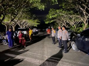 Sebelum kegiatan dimulai, personel pengamanan (PAM) melakukan pengecekan keamanan di dalam gereja dan area sekitar lokasi guna memastikan seluruh rangkaian ibadah dapat berlangsung dengan aman dan lancar. Petugas juga memberikan imbauan kepada jemaat agar menginformasikan parkir kendaraan secara tertib, memastikan kondisi kendaraan aman, serta tetap menjaga ketertiban dan situasi kamtibmas selama ibadah berlangsung.
