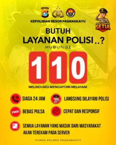 Polres Pasangkayu – Kapolres Pasangkayu AKBP Joko Kusumadinata, S.H., S.I.K. kembali mengingatkan masyarakat Kabupaten Pasangkayu untuk memanfaatkan Layanan Polisi 110 sebagai saluran resmi dalam melaporkan berbagai kejadian darurat maupun membutuhkan bantuan kepolisian. Melalui rilis resmi Humas Polres Pasangkayu, disampaikan bahwa layanan darurat 110 beroperasi siaga 24 jam, bebas pulsa, serta langsung ditangani oleh petugas kepolisian yang kompeten.