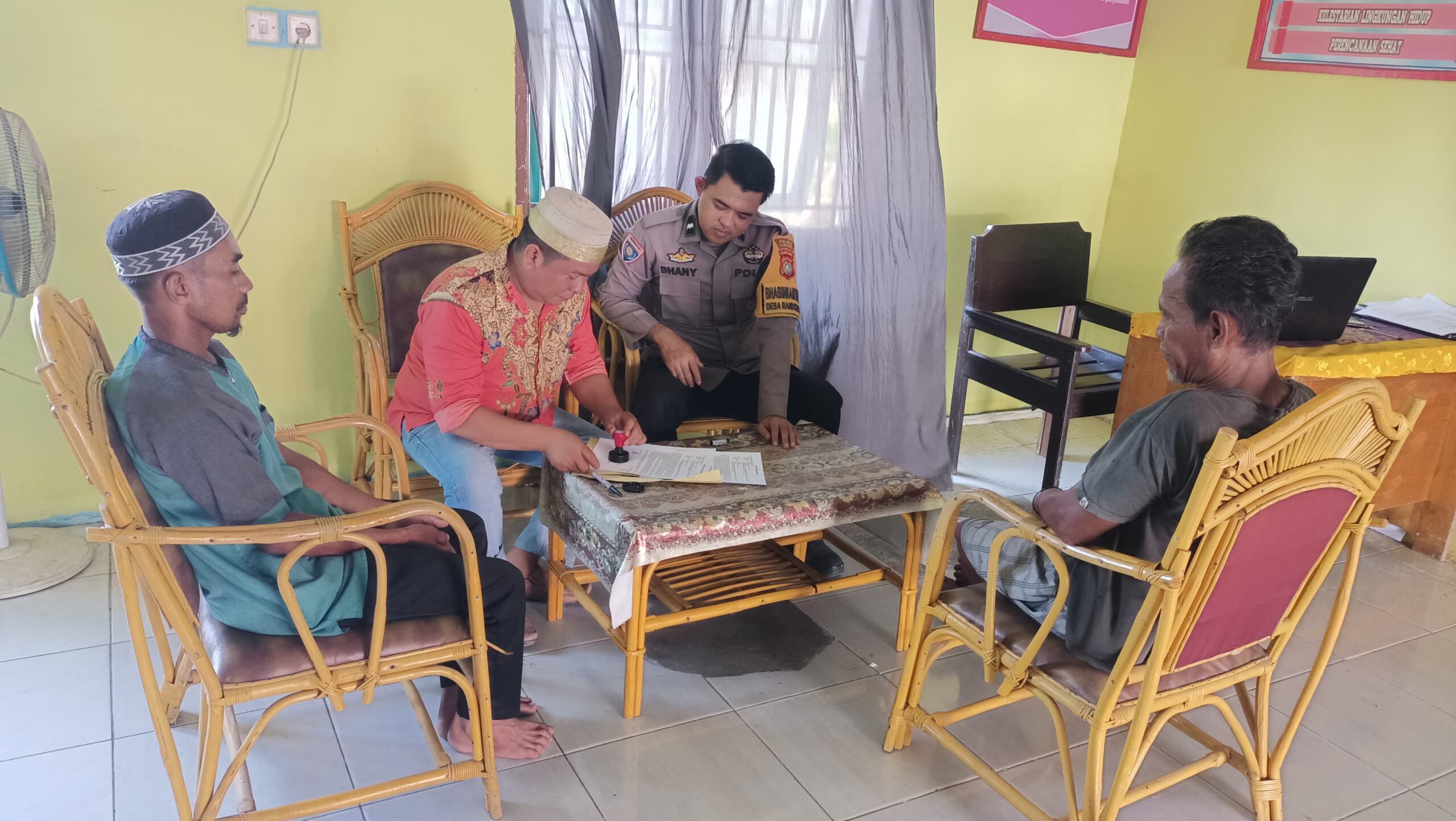 Pada Jumat, 20 Februari 2026 pukul 14.00 Wita, bertempat di Mako Kantor Desa Randomayang, Kecamatan Bambalamotu, Kabupaten Pasangkayu, AIPDA Hamdani memfasilitasi mediasi antara kedua belah pihak yang terlibat dalam kasus penganiayaan yang terjadi pada 17 Februari 2026 di Dusun Matua Jaya, Desa Randomayang.