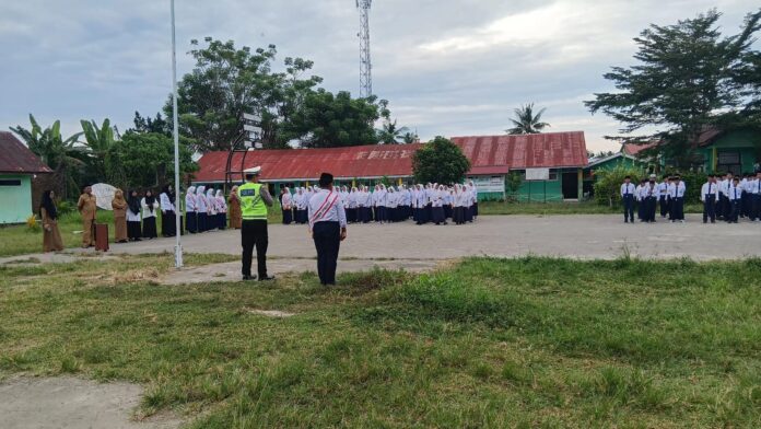 Polres Pasangkayu – Upaya menanamkan kesadaran tertib berlalu lintas sejak usia dini terus digencarkan oleh jajaran Satuan Lalu Lintas Polres Pasangkayu melalui program Police to School. Kegiatan ini kembali dilaksanakan pada Senin, 27 April 2026, sekitar pukul 07.00 WITA, dengan menyasar kalangan pelajar tingkat Sekolah Menengah Pertama (SMP) di wilayah Kabupaten Pasangkayu.