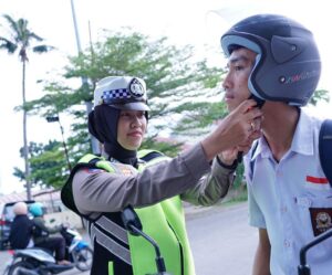 Personel Sat Lantas Polres Pasangkayu secara humanis membagikan helm berstandar SNI sekaligus memberikan edukasi dan himbauan pentingnya penggunaan helm saat berkendara demi keselamatan diri di jalan raya. Kegiatan ini merupakan bentuk kepedulian Polri dalam menekan angka kecelakaan lalu lintas serta menumbuhkan kesadaran masyarakat untuk selalu tertib berlalu lintas.