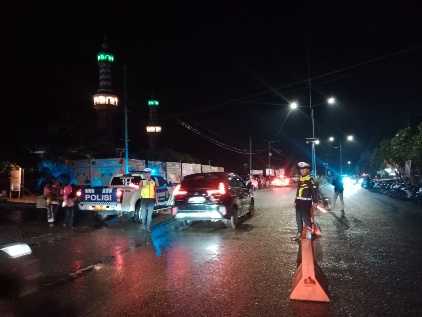 Polres Pasangkayu — Dalam rangka menyukseskan peringatan Hari Ulang Tahun (HUT) Kabupaten Pasangkayu ke-23, Satuan Lalu Lintas Polres Pasangkayu melaksanakan kegiatan pengamanan dan pengaturan arus lalu lintas (Pam Lalin), meskipun diguyur hujan pada malam hari.