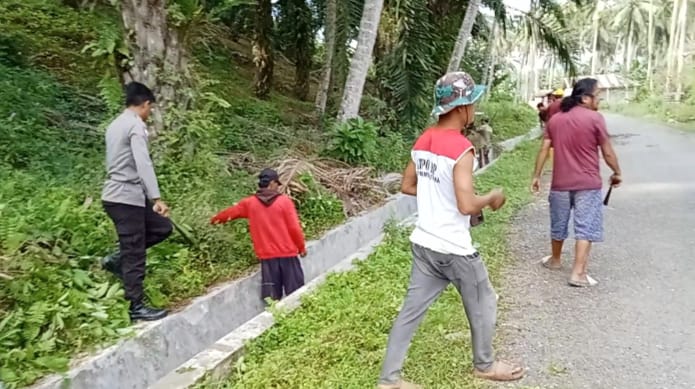 Polres Pasangkayu – semangat gotong royong kembali bergema di Dusun Kalola, Desa Kalola, Kecamatan Bambalamotu, Kabupaten Pasangkayu. Bhabinkamtibmas Polsek Bambalamotu, Bripka Asdar Ahmad, bersama warga serta aparat pemerintah desa setempat, turun langsung melaksanakan kerja bakti di sepanjang jalan masuk menuju Tempat Pemakaman Umum (TPU) Desa KalolaJumat pagi (11/7/2025) pagi